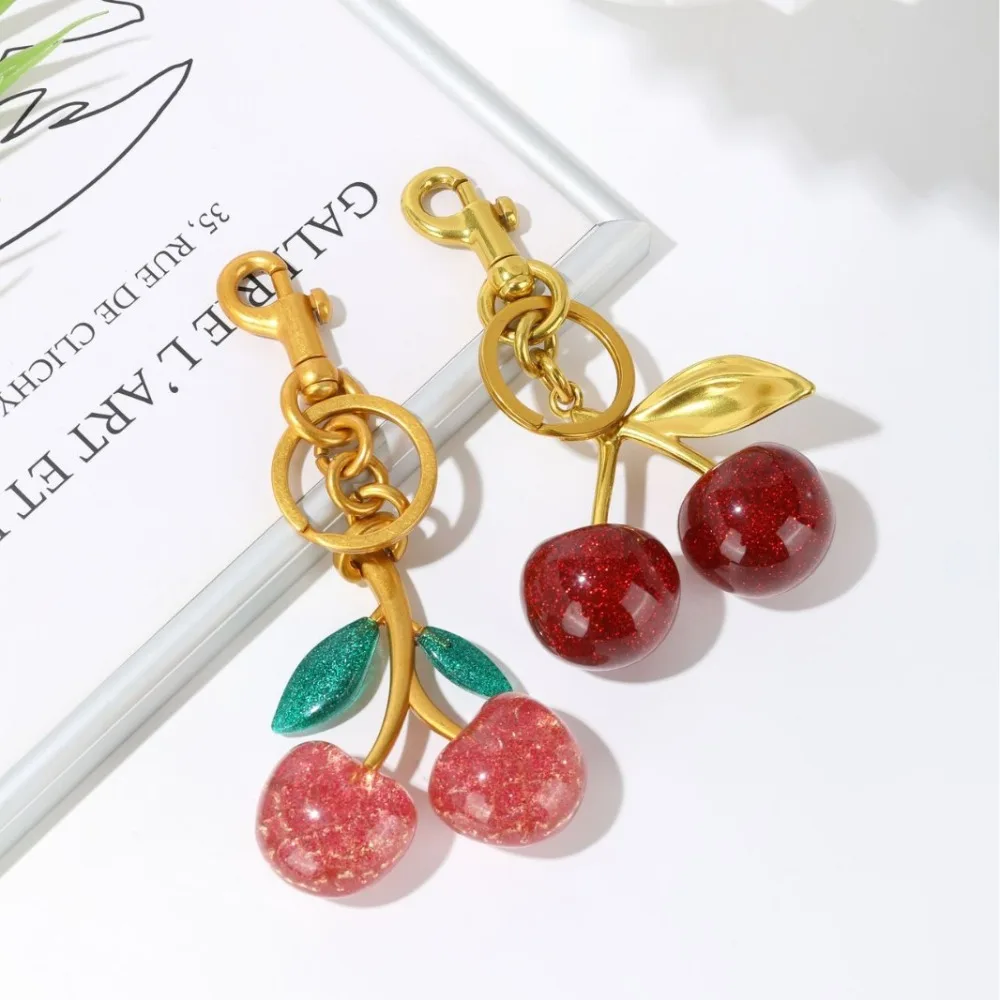 Fashion Delicious Red Cherry Keychain Summer Fruits Cherries Pendant Keyring For Women Men Jewelry Bag Accessories Gift