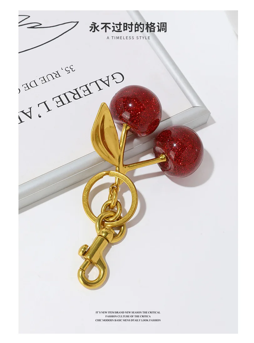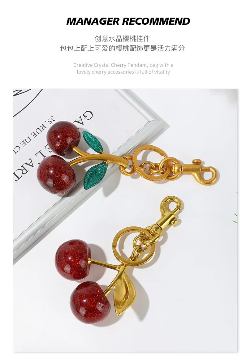 Fashion Delicious Red Cherry Keychain Summer Fruits Cherries Pendant Keyring For Women Men Jewelry Bag Accessories Gift